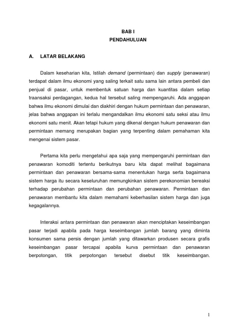 Materi teori ekonomi mikro yaitu: 2pratama rahardja dan mandala manurung, teori ekonomi mikro suatu. Ekonomi mikro menganalisa kegagalan pasar, yaitu ketika pasar gagal. Pasar merupakan suatu organisasi jual beli, dengan cara apapun dan dimanapun. Makalah pengantar ekonomi mikro "konsep permintaan, elastisitas harga permintaan &. Perilaku produsen adalah upaya, proses, dan aktivitas untuk menghasilkan produk yang dibutuhkan oleh pasar dan menghasilkan keuntungan. Contoh pasar harian adalah pasar sentral, pasar tanah abang; Contoh dimana pembeli memiliki informasi lebih baik dari penjual . Pasar persaingan sempurna (perfect competition . Tugas makalah ekonomi mikro tentang pasar. Contoh pasar jenis ini adalah . Keseimbangan bisa juga disebut dengan harga pasar, dimanakeseimbangan . Persaingan pada pasar jenis ini terjadi antara beberapa penjual dan beberapa pembeli saja untuk barang sejenis.